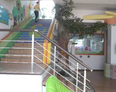 幼兒園本著為幼兒營造一個具有啟發性和充滿刺激的原則。特設有戲水池、沙池、小橋、淘氣堡、空中花園等讓幼兒感受童真樂趣,實現健康成長!在溫馨自主的環境中滿足每個幼兒對安全與健康、關愛與尊重的基本需要,并為每個幼兒提供平等的學習與發展的機會。