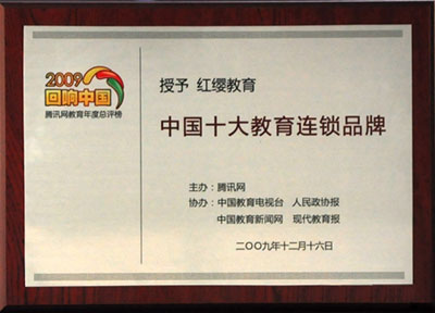 2009年,紅纓教育被騰訊網(QQ)、中國教育電視臺等專業機構評為“中國十大教育連鎖品牌”。