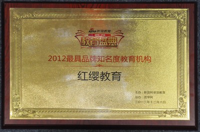 2012年,紅纓教育在新浪2012中國教育盛典中榮獲“最具品牌知名度教育機構”稱號。